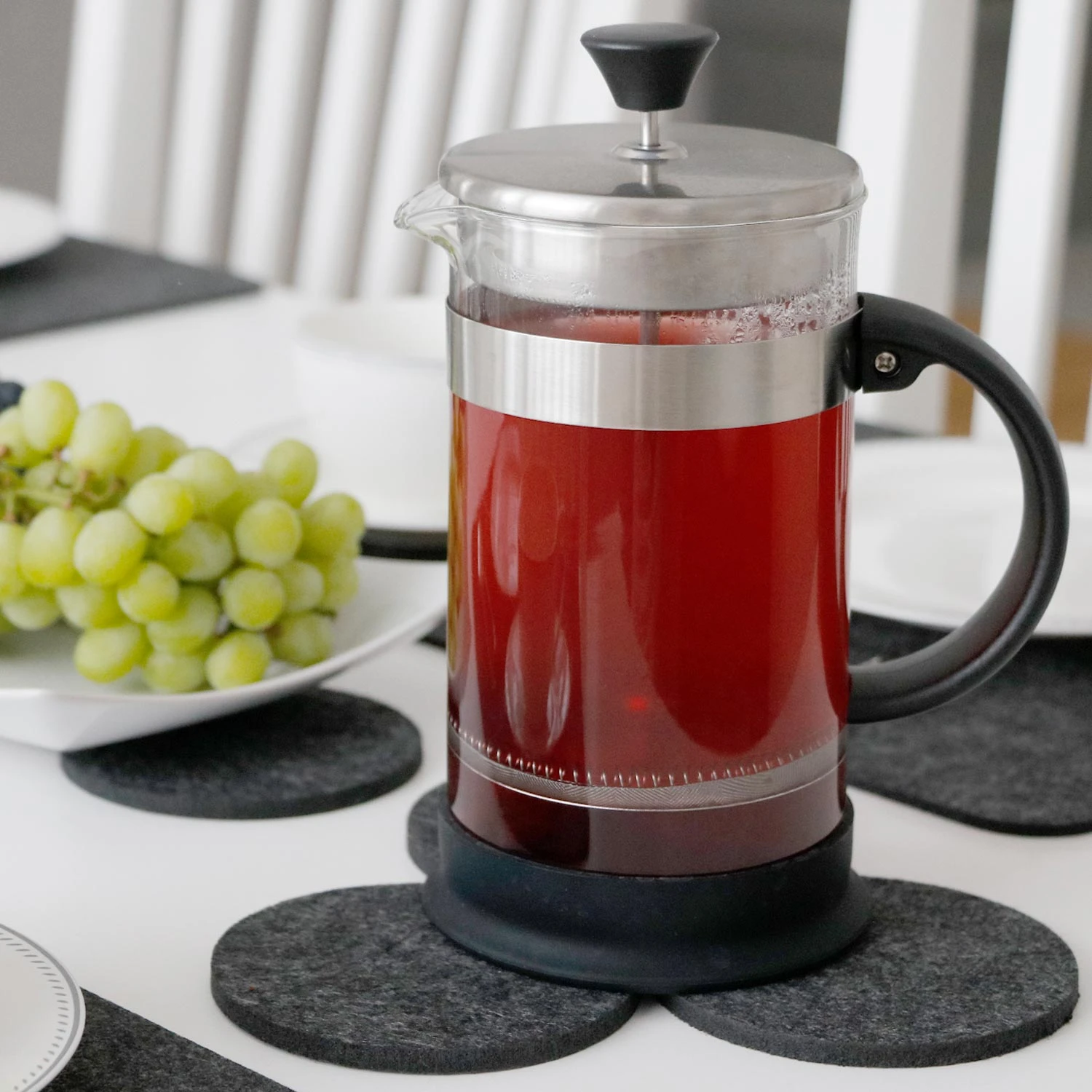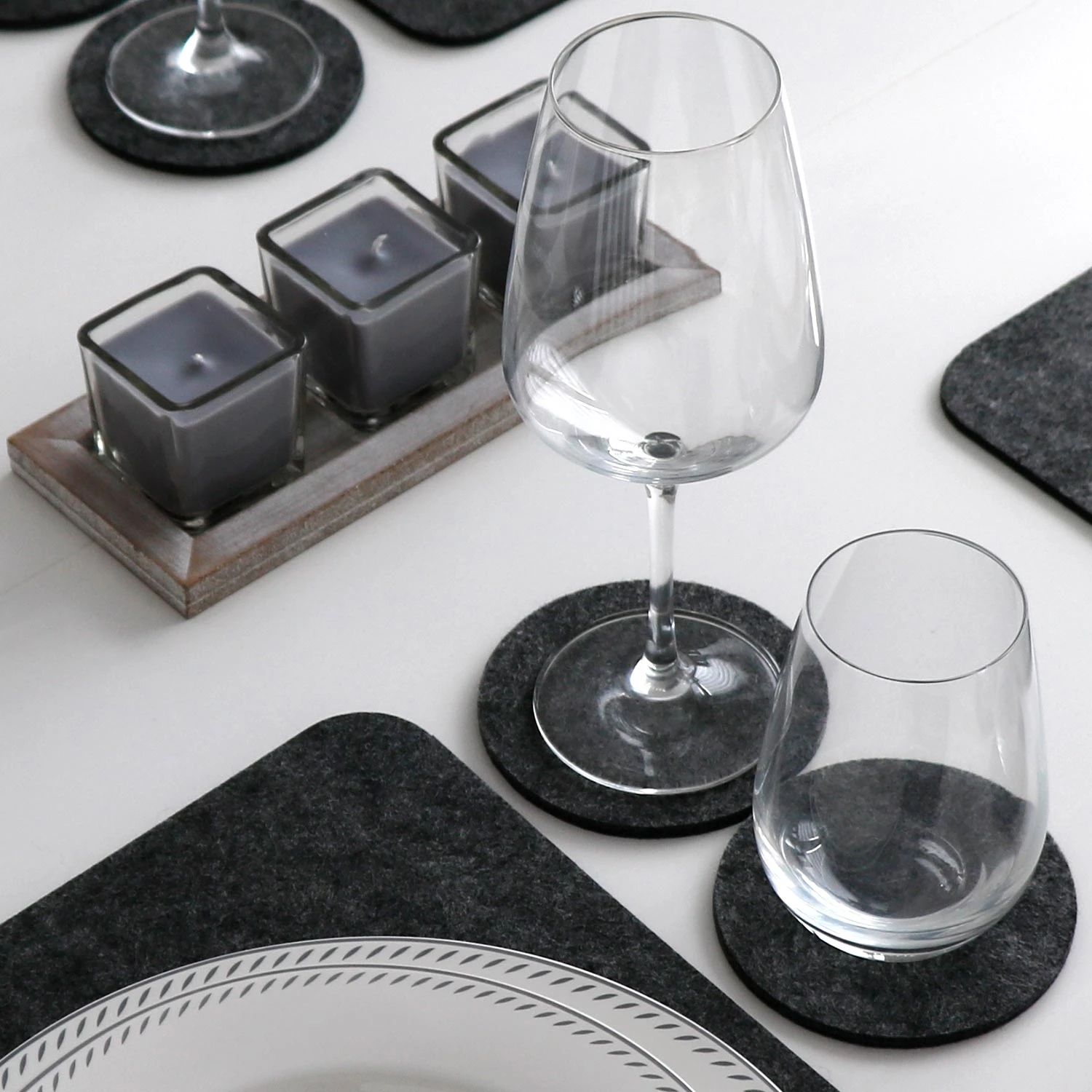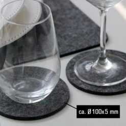 Die Glas-Untersetzer aus Filz sind extra pflegeleicht, wirken aber gleichzeitig edel und elegant – ohne den typischen „Plastik-Look“. Damit verzaubern Sie jeden Esstisch in eine moderne, stilvolle Tafel.