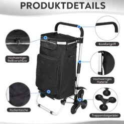- BEWÄLTIGT MÜHELOS ALLE STUFEN: Ob Treppenstufen oder Bordsteinkanten – dank 3+3 Rad-System bewältigt der Einkaufstrolley Treppensteiger alle Hindernisse