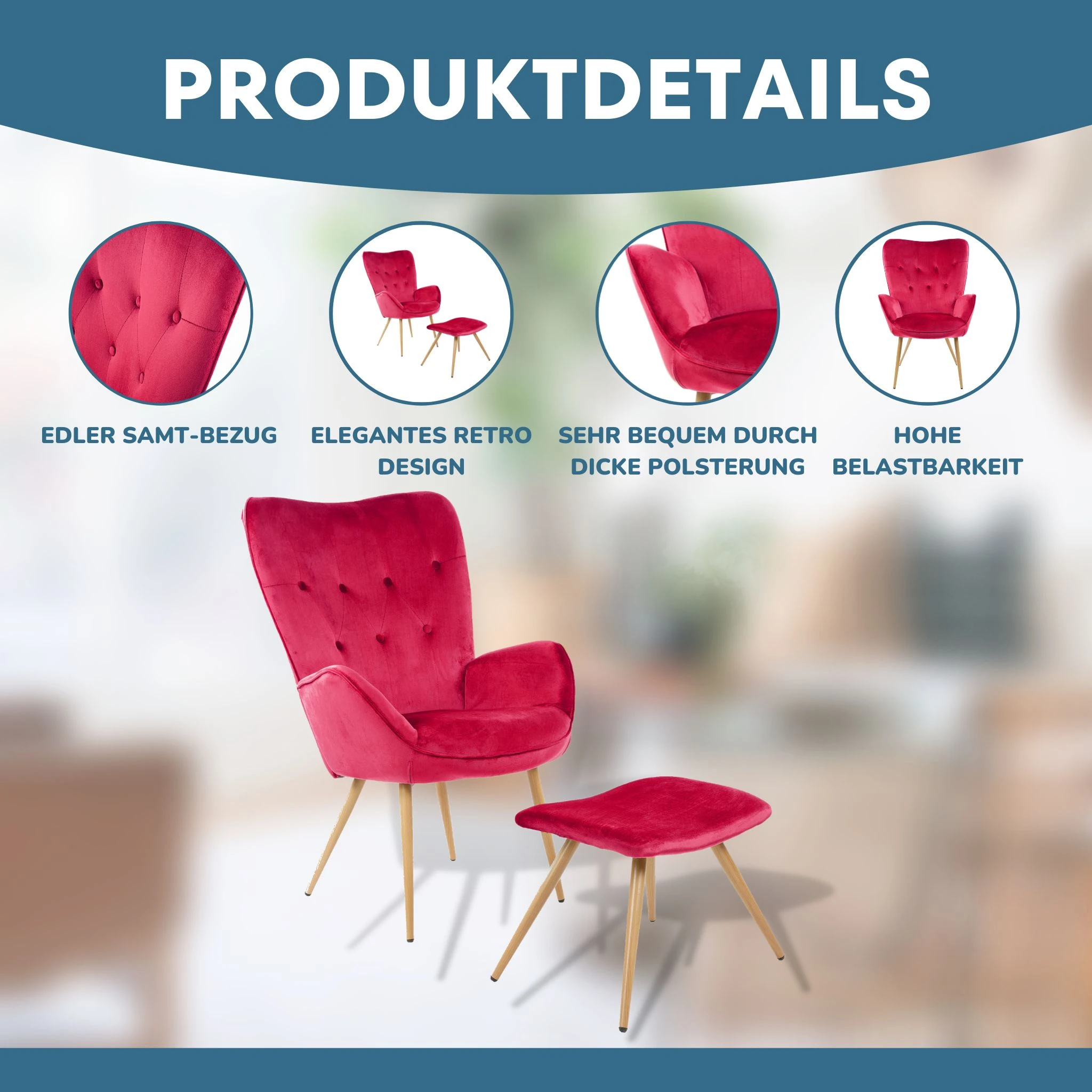 Albatros Ohrensessel mit Hocker YORK, Samt Bezug, bequem gepolstert, Fernsehsessel, Polstersessel