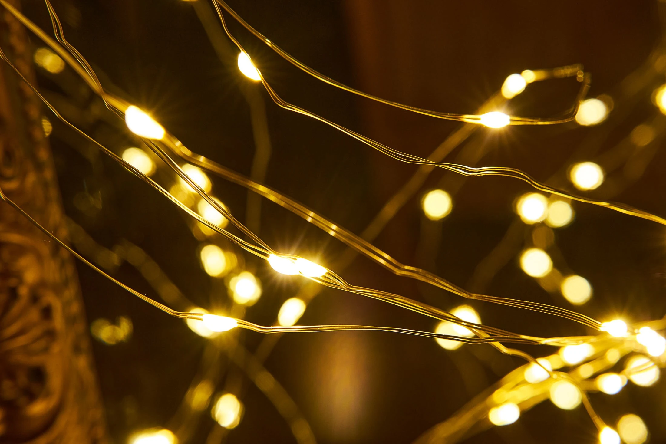 Die LED-Lichterkette von AMARE ist pro Strang 1,9 m lang sowie mit einem Dimmer und einer Fernbedienung ausgestattet. Sie eignet sich für innen und außen. Die Zuleitung (transparentes Kabel) ist 5,0 m lang. Die Lichterkette besteht aus zehn Strängen mit je 20 LEDs zu je 3,0 V / 0,06 W. Die Gesamtleistung der Kette beträgt 4,5 V DC / 3,6 W. Der Adapter ist ein IP44-gesicherter Außentransformator mit einem 6-h-Timer, vier Dimmstufen und acht verschiedenen Modifunktionen, darunter Dauerlicht, warme Wellen, sequentielles Leuchten, langsam glühend oder auch langsam ausblendend und funkelnd.