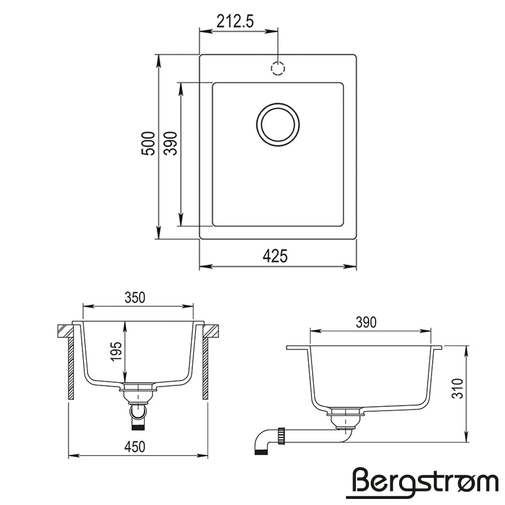 Das zeitgemäße Spülbecken der Marke Bergström besticht durch ein formschönes, elegantes Design und hochwertige Verarbeitung.