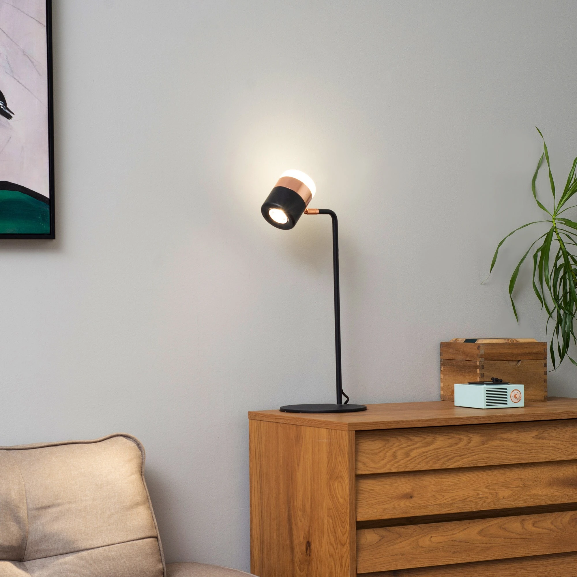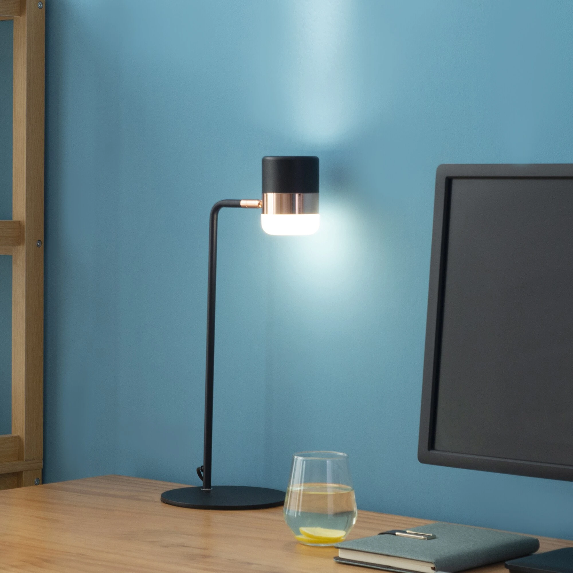 Beleuchten Sie Ihr Schlafzimmer mit dieser kleinen und schlichten Lampe . Der dreifarbige zylindrische Lampenschirm verleiht ihr einen modernen Stil. Ein runder Sockel sorgt für Ausgewogenheit und ein um 90° drehbarer Kopf bietet den perfekten Beleuchtungswinkel. Die weiche LED-Beleuchtung sorgt für eine sanfte Beleuchtung, damit die Augen bei der Arbeit am Abend nicht ermüden.