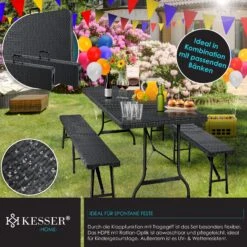 KESSER Praktischer Klapptisch Partytisch/Buffettisch im Rattan – Look