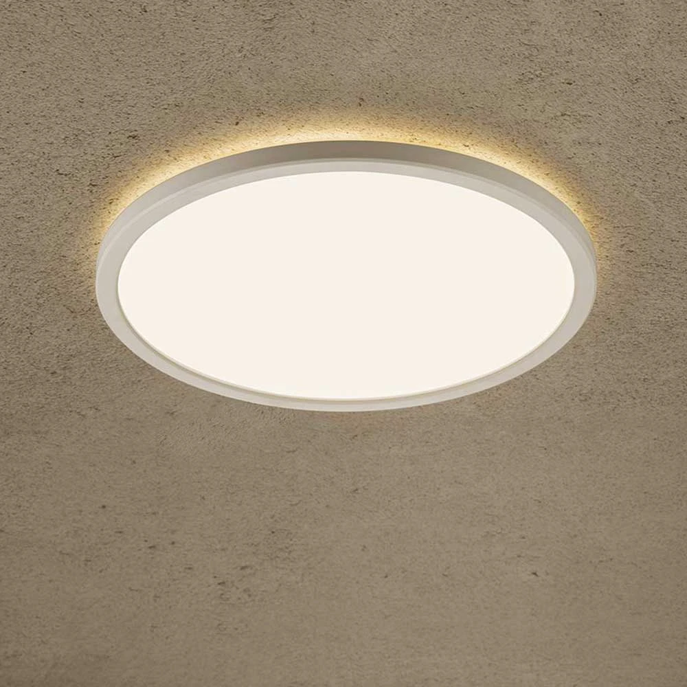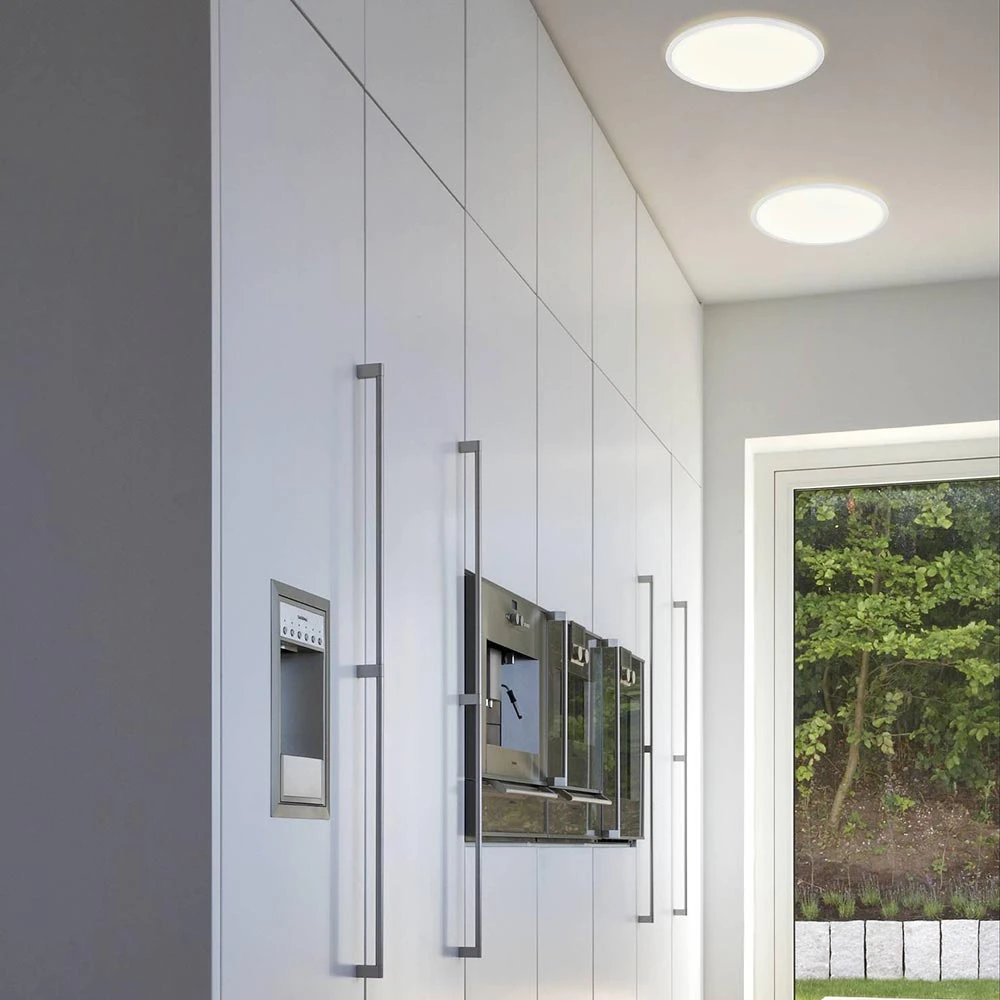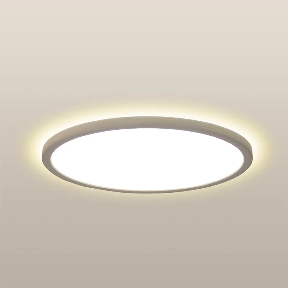 Diese spitzwassergeschützte LED-Leuchte ist ein echter Hingucker im Bad, Schlafzimmer, Wohnzimmer, Flur oder in der Küche – mit warmweißen Licht (2.700 Kelvin) und einer Lichtstärke von 2.150 Lumen spendet die moderne LED-Deckenleuchte Board von Licht-Trend helles und angenehmes Licht in Ihrem Wohnraum. Aufgrund ihres schlichten und zeitlosen Designs rückt die Leuchte vor allem mit direkter und indirekter Lichtabstrahlung besonders in den Vordergrund. Des Weiteren kann die Leuchte mit einem LED-Dimmer per Phasenan- bzw. Phasenabschnitt ganz einfach stufenlos in der Helligkeit gedimmt werden. Die extrem flache LED-Deckenlampe hat einen Durchmesser von 42cm und eine Aufbauhöhe von nur 2,3cm.