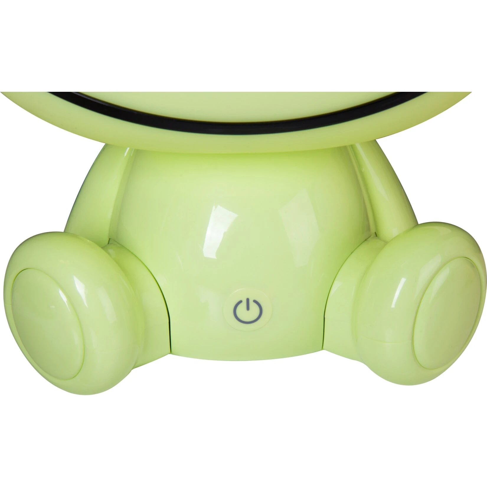 Die Nattischleuchte Frog ist nicht nur etwas für die Kleinen, sie könnte sogar einige größere Tierliebhaber ansprechen. Der Korpus besteht aus weichem Kunststoff und der Kopf wird voll ausgeleuchtet. Per Tastschalter ist die Leuchte sind drei Helligkeitsstufen einstellbar, wobei die niedrigste sehr gut als Nachtlicht fungiert. Die LEDs der Nachttischleuchte sind fest verbaut. Betrieben wird die Leuchte über ein beigelegtes USB Kabel (Netzstecker nicht im Lieferumfang enthalten).