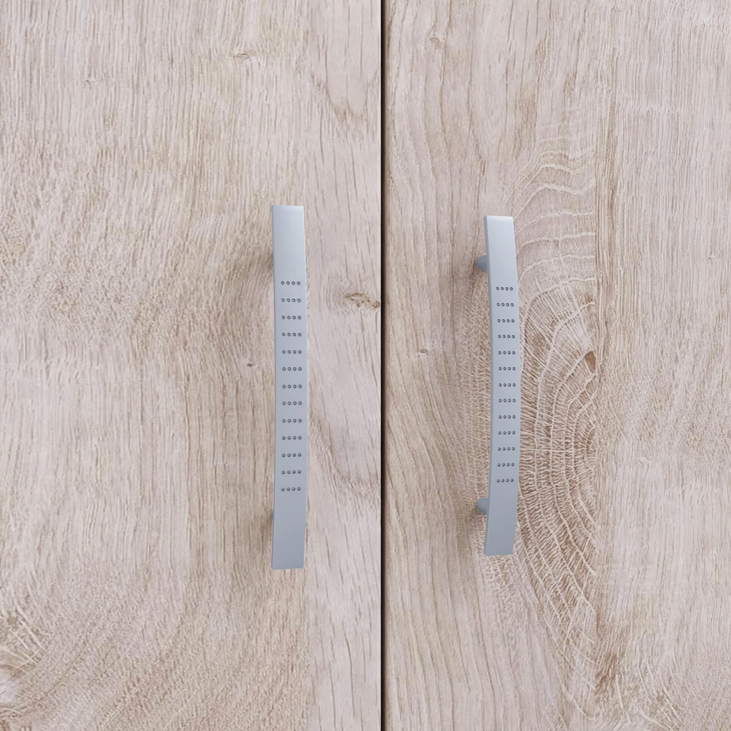 Korpus Weiß und Front Eiche Desmond Silbergrau Melamin Dekor