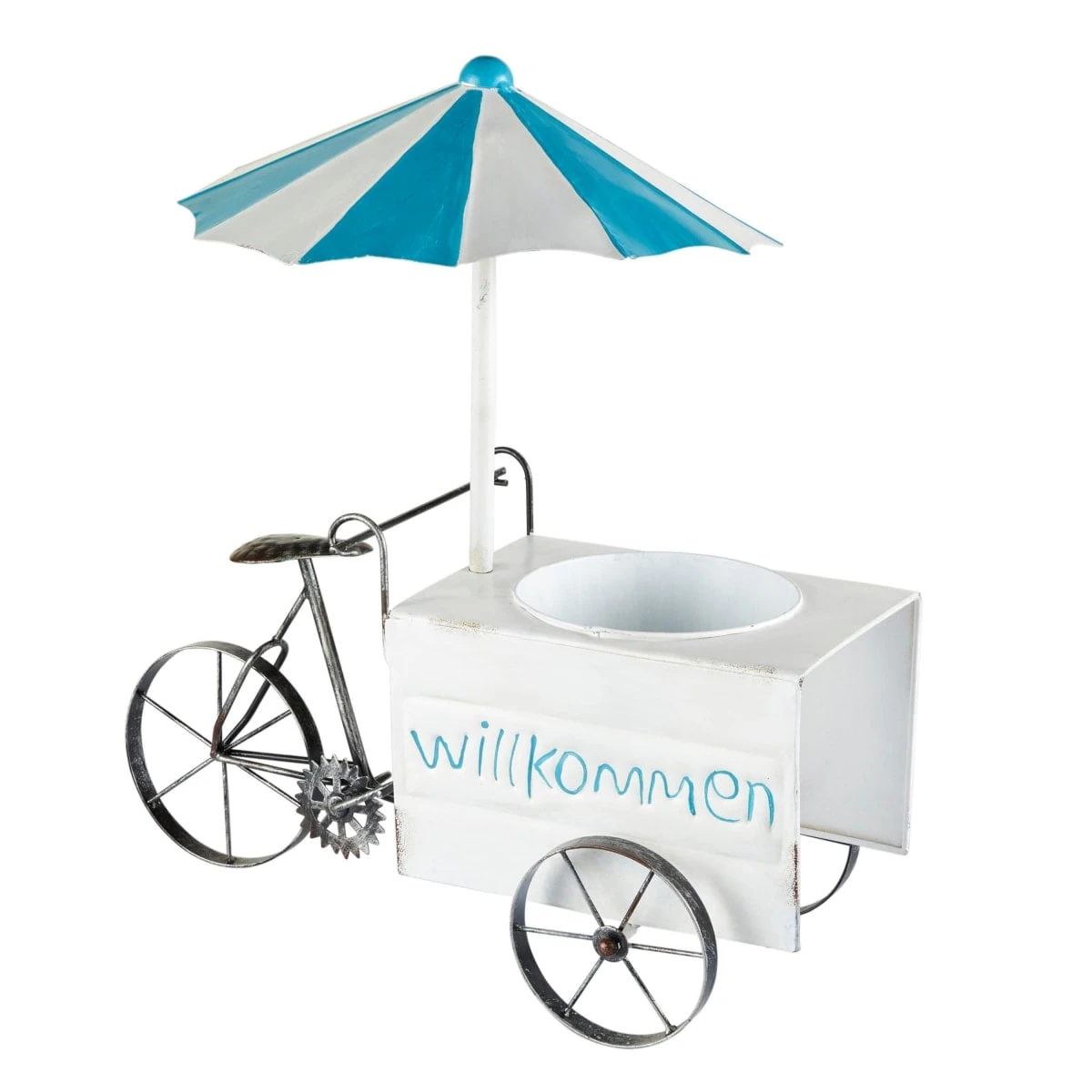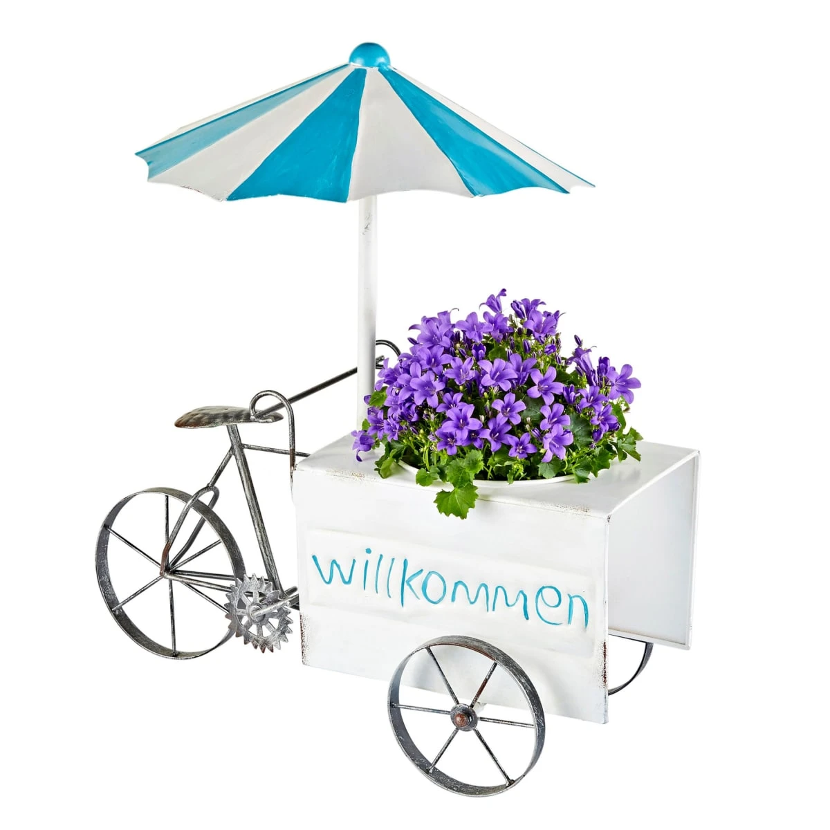 - Maße: Wagen ca. Breite 49 x Tiefe 34 x Höhe 52 cm, Übertopf ca. Ø16 x Höhe 14 cm