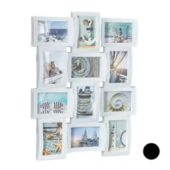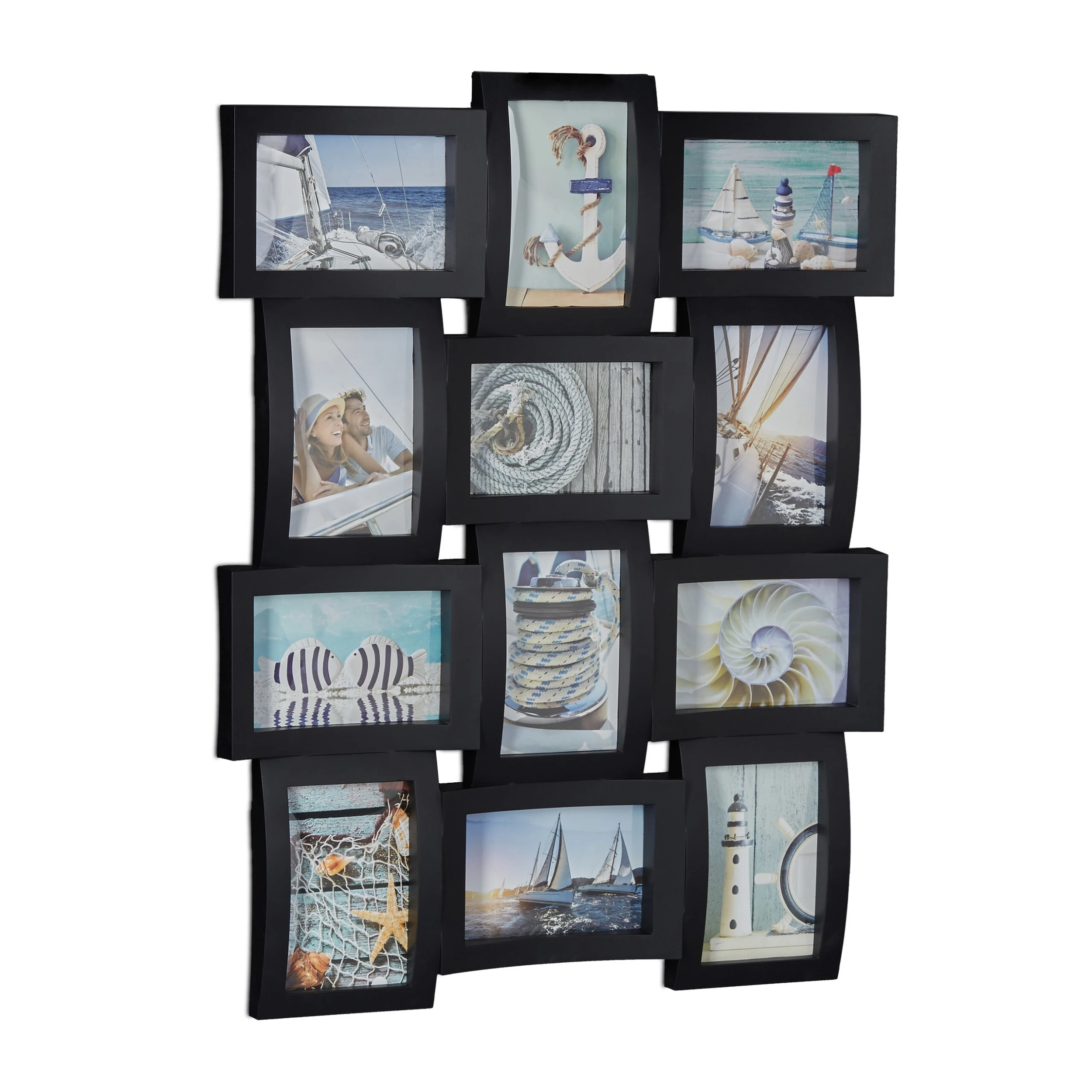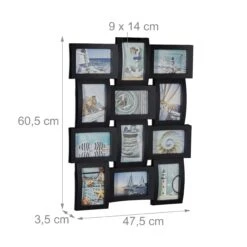 Sie möchten sich und Ihre Lieben an großartige Momente erinnern? Mit diesem Mehrfachbilderrahmen erstellen Sie Ihre ganz persönliche Collage aus 12 Fotos oder Bildern. Das moderne Design wird jedem Gast sofort ins Auge springen und zum interessierten Betrachten animieren. Der Bilderrahmen lässt sich dank der Halterungen horizontal oder vertikal an der Wand aufhängen. Um Ihre Fotos einzulegen, ist keinerlei Werkzeug erforderlich. Drehen Sie die rückseitigen Klammern einfach nach außen, sodass sich die Platte anheben lässt.