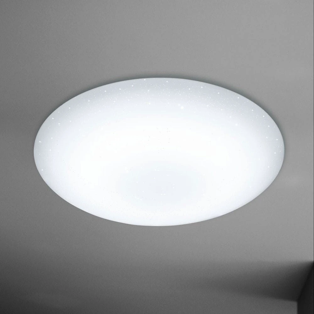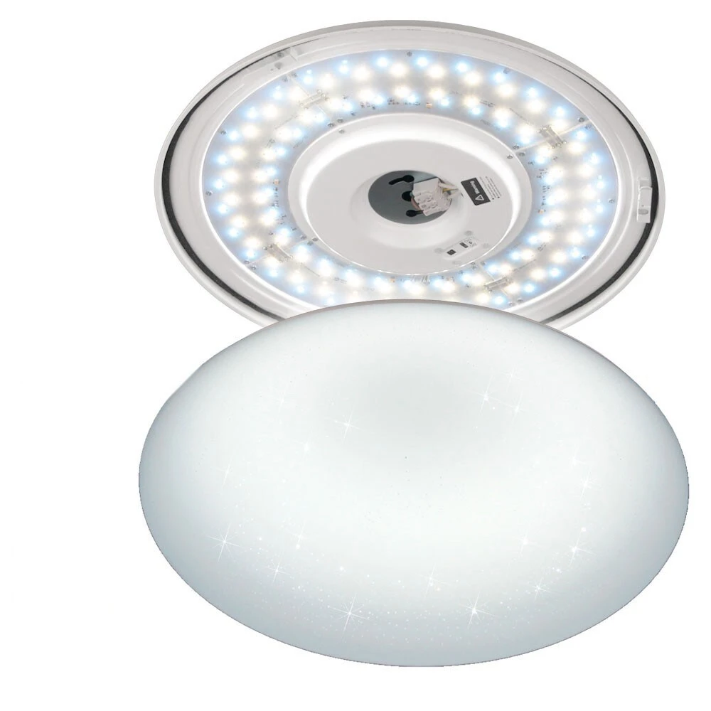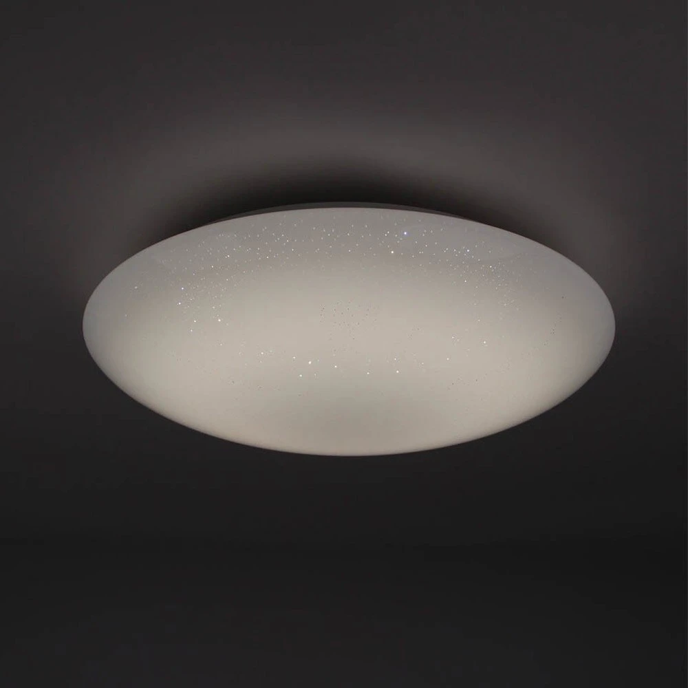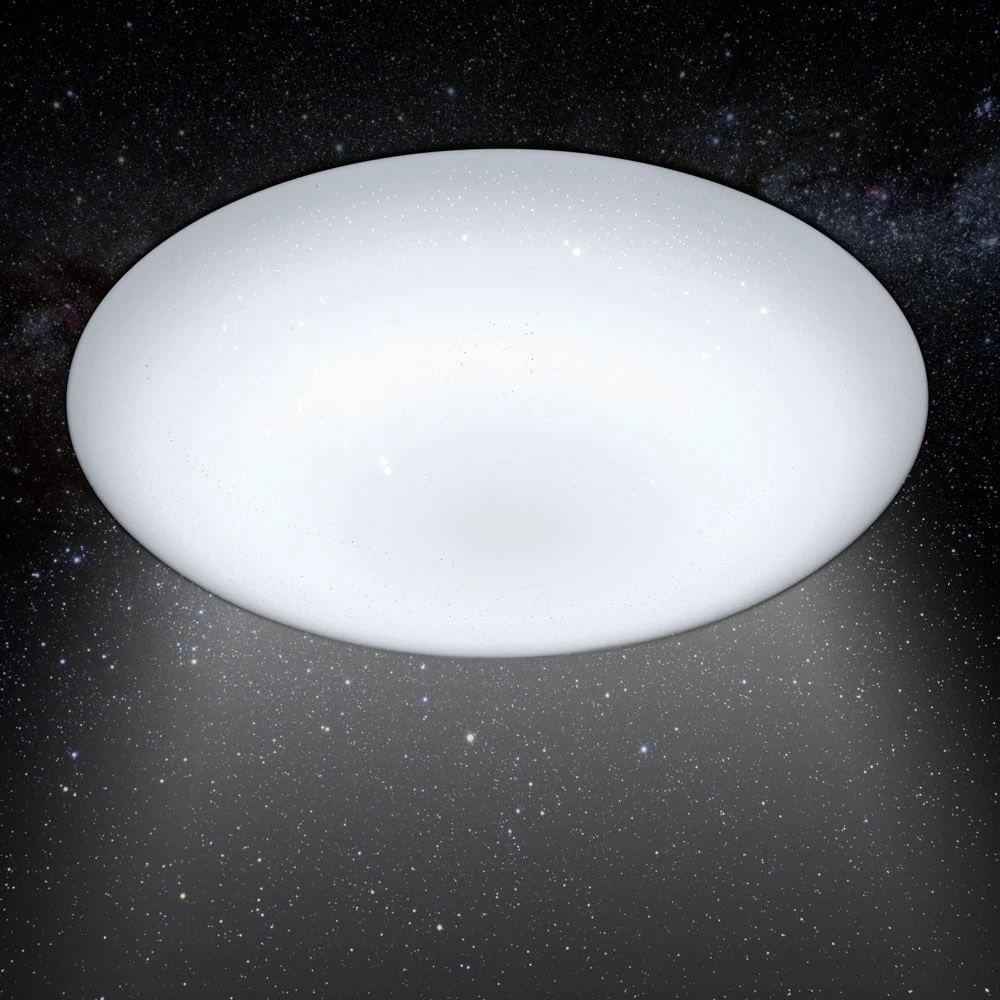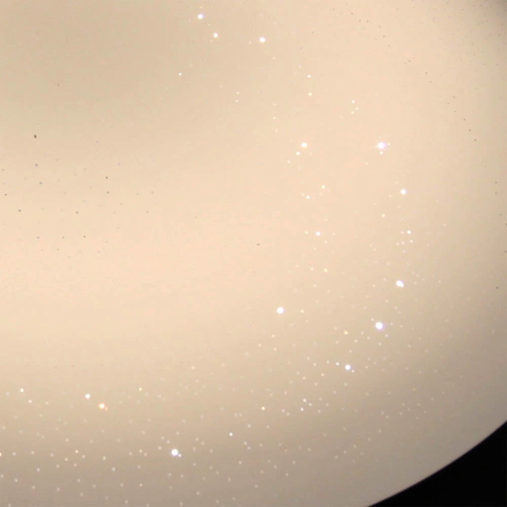 Die Deckenleuchte Sparkle ist optisch ein echter Leckerbissen. Auf den ersten Blick mag es so wirken, als ob es sich um eine ganz gewöhnliche Nurglasleuchte handeln würde, aber spätestens im eingeschalteten Zustand zeigt sie durch das dem Lampenschirm immanente Funkeln, was in ihr steckt. Je nachdem, wie man die Leuchte betrachtet, verändert sich der Effekt und macht die Leuchte auf diese Art fast zu etwas Lebendigem, Magischen. Durch kleine, klare Aussparungen im ansonsten satinierten Leuchtenschirm strahlen die LEDs mal stärker oder weniger stark hindurch – so ergibt sich der Effekt eines funkelnden Sternenhimmels.