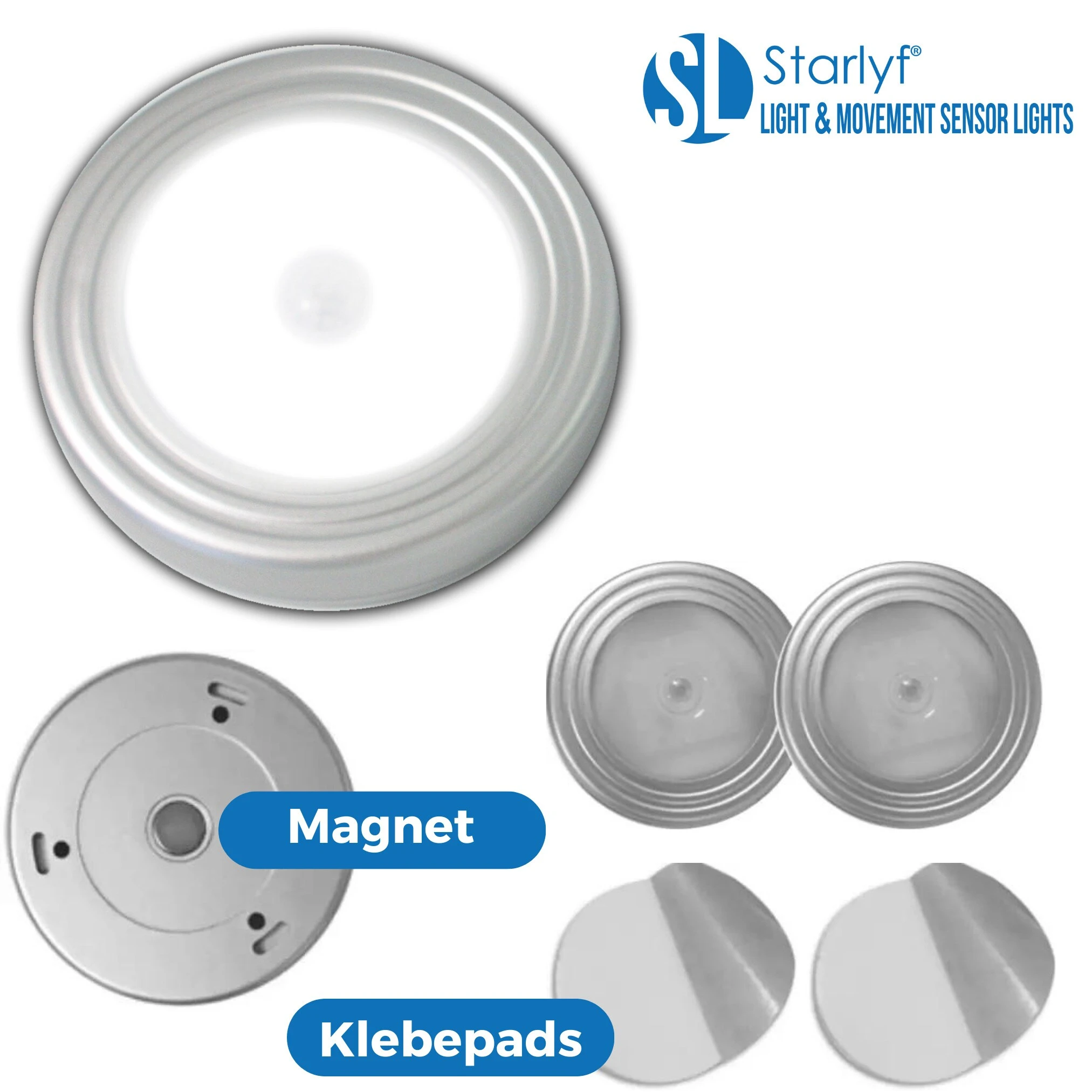 Starlyf® Light & Movement Sensor Lights – wenn es im Haus dunkel ist, ist es manchmal schwierig, den Weg zur Toilette oder in die Küche zu finden. Wenn Sie im Dunkeln nichts sehen, können Sie sich leicht verletzen oder stolpern. Es wäre natürlich super praktisch, wenn es Lichter im Flur gäbe, damit man sehen kann, wohin man geht. Den Lichtschalter im Dunkeln zu finden, ist manchmal eine ziemliche Aufgabe. Zum Glück gibt es jetzt die Sensor Lights von Starlyf®. Dies sind leistungsstarke LED-Lampen, die starten, sobald eine Bewegung erkannt wird. Auf diese Weise können Sie genau sehen, wohin Sie gehen. Sobald Sie weg sind, gehen die Lichter automatisch wieder aus. Sie können die Lampen aufhängen, wo immer Sie wollen. Sie sind sehr ideal für das Kinderzimmer, Schlafzimmer, Wohnzimmer, Flur, Küche und andere Räume. Sie können sie auch im Kellerschrank oder zum Beispiel entlang der Treppe verwenden, damit Sie die Stufen gut sehen können. Um die Starlyf® Motion LED-Lampen direkt nutzen zu können, benötigen Sie keinen kompletten Werkzeugkasten. An den Lampen sind auf der Rückseite starke Magneten montiert, sodass Sie sie sofort aufhängen können. Wenn die Oberfläche nicht magnetisch ist, wo Sie die LED-Lampen aufhängen möchten, dann können Sie mit den gelieferten 2 doppelseitigen Aufklebern arbeiten, damit Sie sie an der Oberfläche befestigen können.