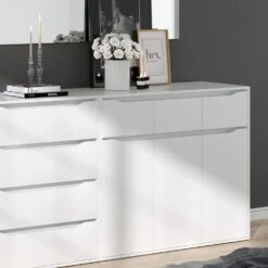 Diese funktionale Kommode präsentiert sich in einem modernen Design. Sie bietet mit ihren großen Schubfächern