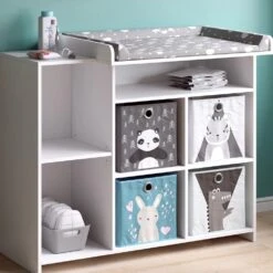 • Dank abnehmbarer Wickelauflage wächst dieses Möbelstück einfach mit. Die praktische Grifföse der Faltboxen ermöglicht einen leichten Griff aus dem Regal.