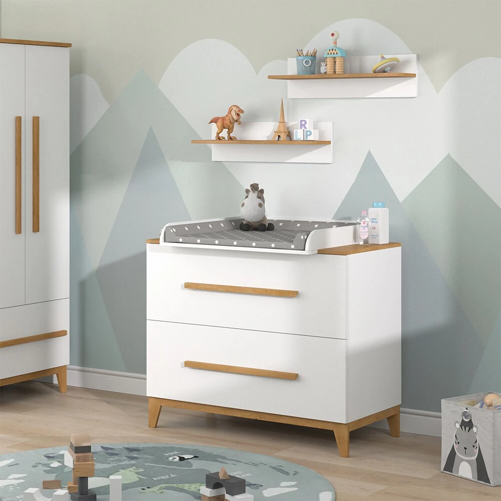 • Durch die praktische Anbringung der Wickelauflage bleibt man flexibel. Die abnehmbare Wickelauflage verfügt über einen erhöhten Rand, sodass das Baby sicher und bequem gewickelt werden kann.